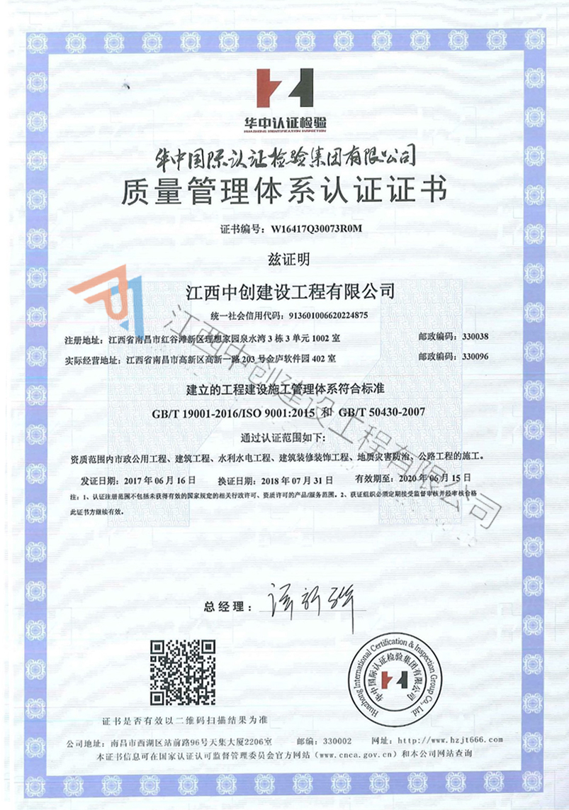 • 江西中創建設工程有限公司企業理念2018-07-26